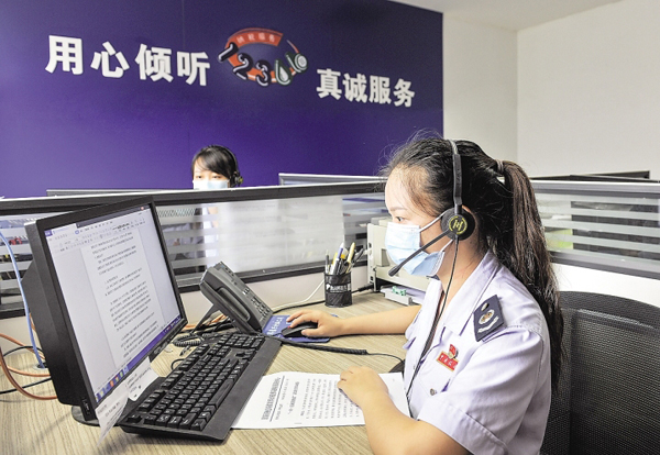 图为张家界市12366纳税服务热线全天保持畅通,为纳税人缴费人提供咨询服务。