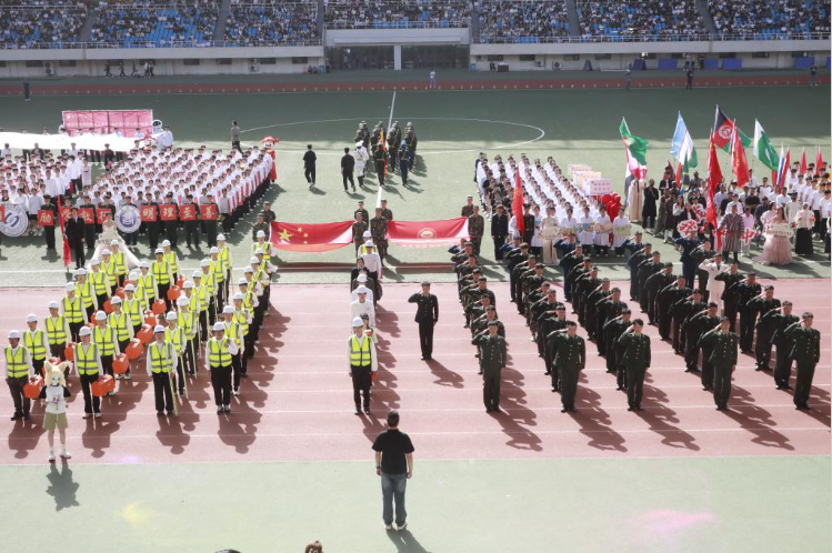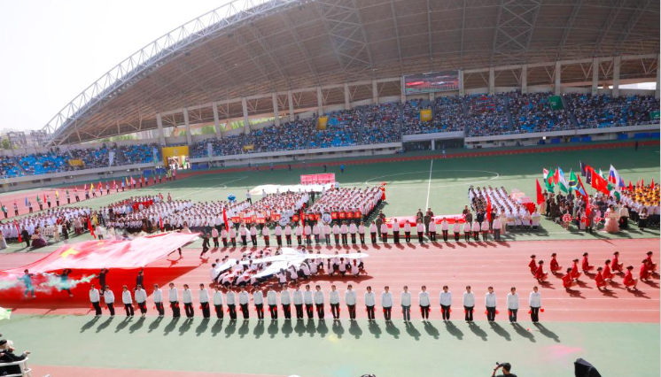 (文/陈欢 图/杨鑫月 刘婷 张逸涵 冷全宇 余有庆 丁春慧 陈佳琰 张传民 齐梦扬 陈洁 刘金果)春和景明,草木竞发。4月23日,古天乐太阳集团城第十届运动会开幕式在东校区体育中心举行。全体校领导出席开幕式,各单位负责人与近2万名师生现场参加,20000余名师生通过官方视频号、抖音号等线上直播平台观看。开幕式由校党委书记孙爱芳主持。