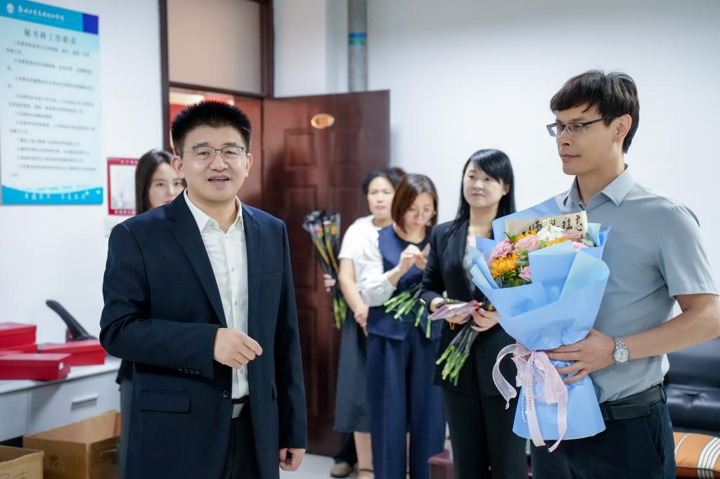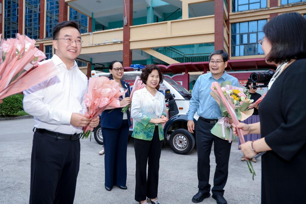 表彰大会后,孙爱芳和闫兵分别带队走访慰问教学一线,为大家送上节日福利、鲜花和祝福,与教师们共度佳节。